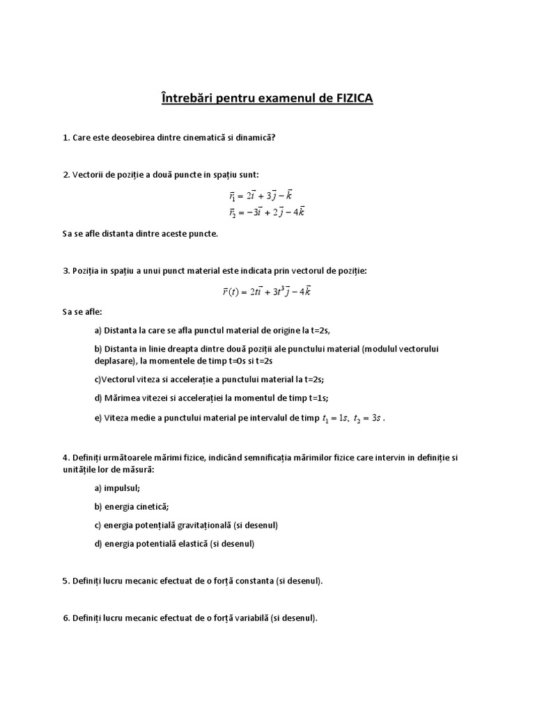 Subiecte Si Exemple De Intrebari Fizica Pdf