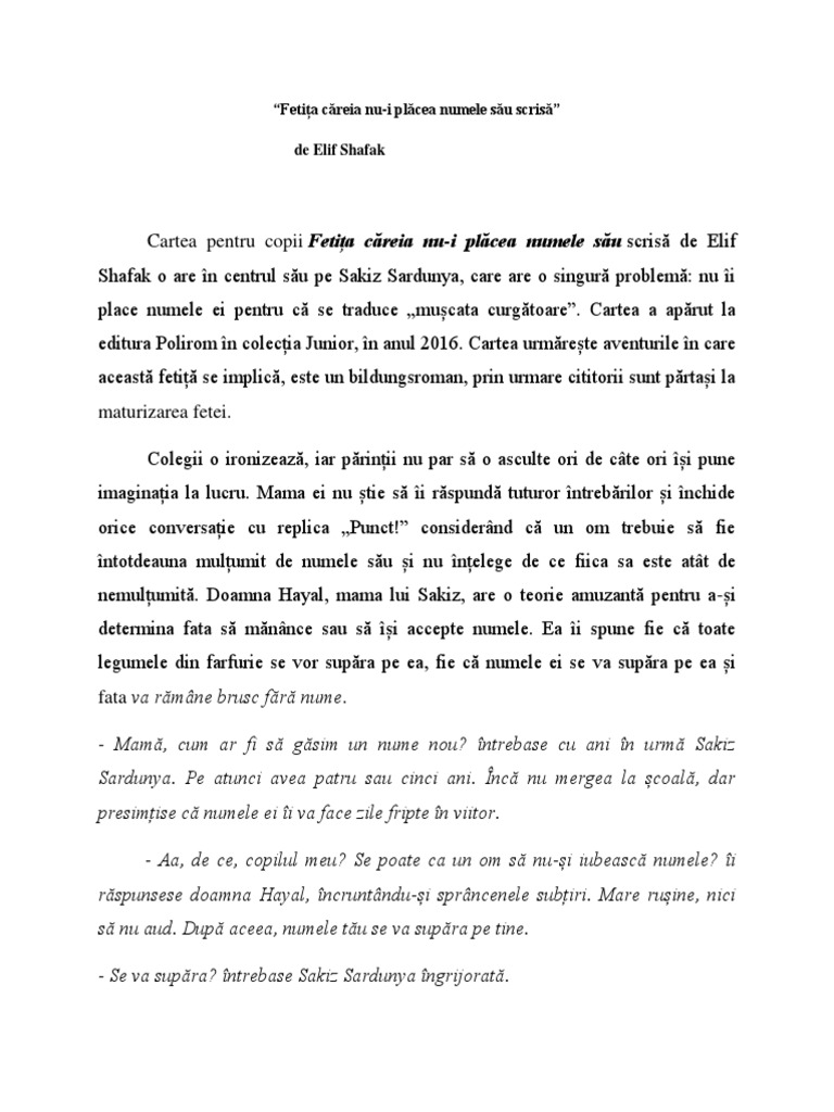 Fetita Careia Nu I Placea Numele Sau Elif Shafak Pdf Carte Pdf Citești Instant