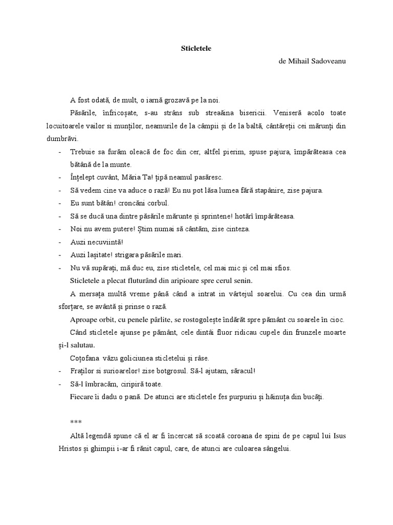 Sticletele Mihail Sadoveanu Docx