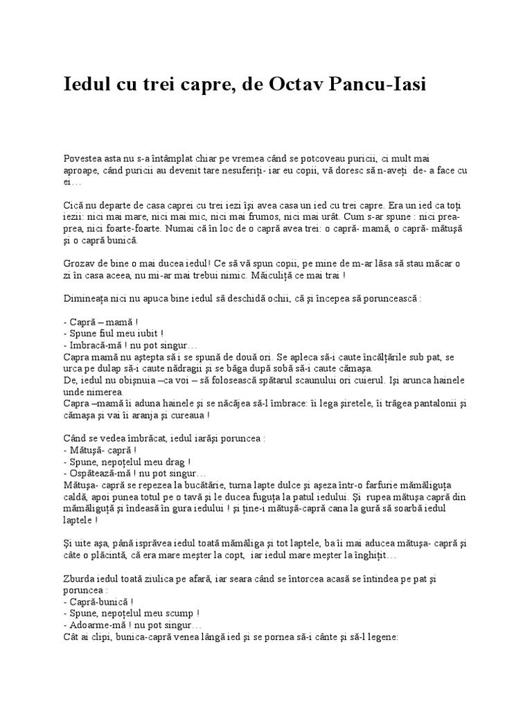Iedul Cu Trei Capre Proiect Didactic Pdf Document