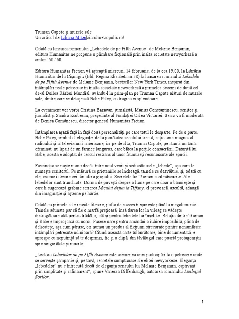 Lebedele De Pe Fifth Avenue De Melanie Benjamin Recenzii Filme Si Carti
