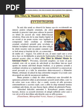 Din Tibet In Sfantul Munte La Batranul Paisie Pdf