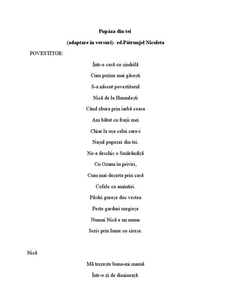 Cantece Pentru Copii Pupaza Din Tei Txt