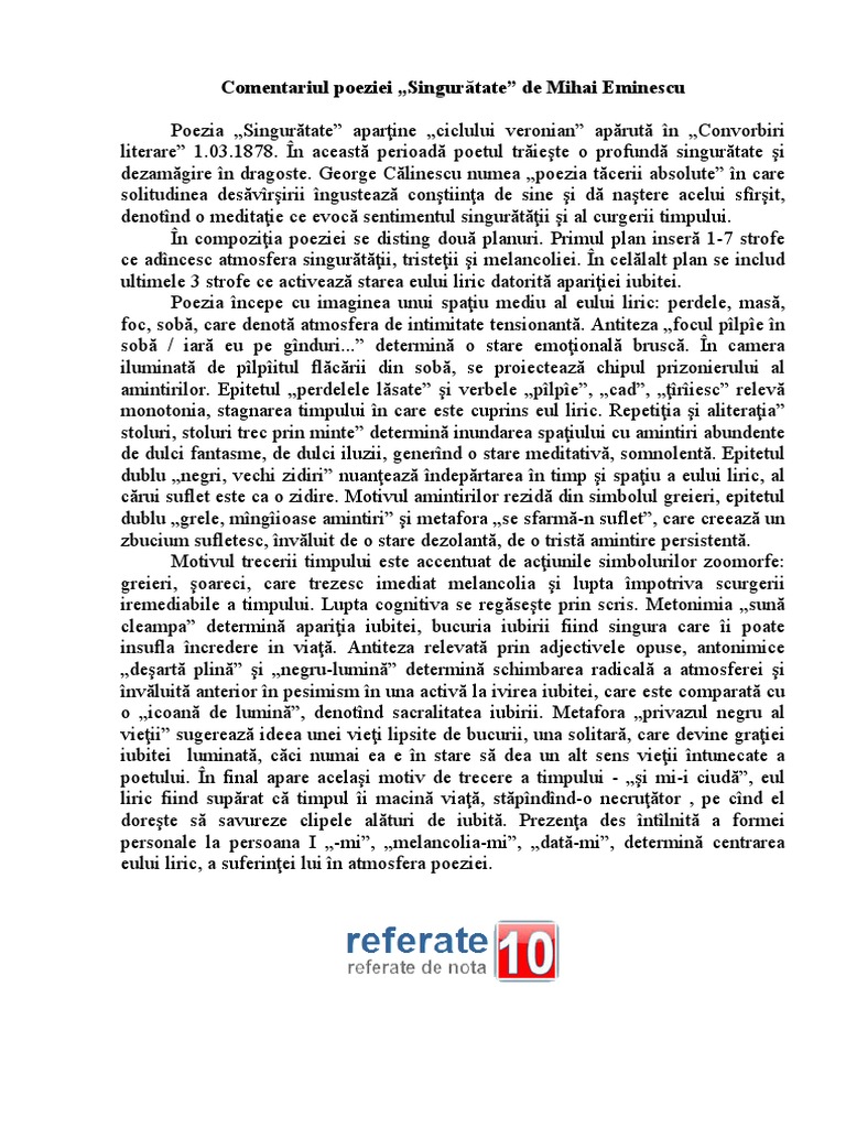 Comentariul Poeziei Singuratate De Mihai Eminescu Pdf